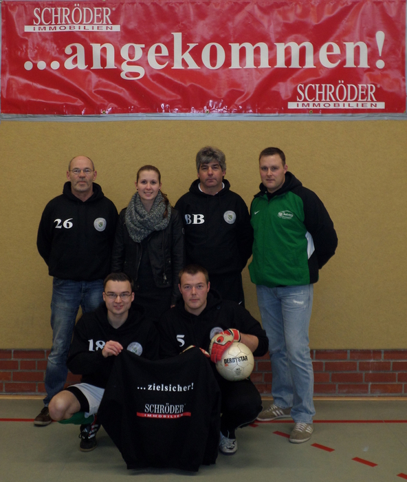 Winterzeit ist Hallenfußball-Zeit. So auch in der Elbmarsch. Neben den seit Jahren renommierten Hallenturnieren der 1.Herren und der Frauenmannschaft hat nun auch die 3.Herren der Eintracht Elbmarsch ihr eigenes Hallenturnier. Hierzu konnte man Schröder Immobilien aus Winsen als starken Partner und Sponsor gewinnen. Im Rahmen eines Mitternachtsturniers fanden sich trotz diverses anderer Hallenturniere gleich 10 Mannschaften, davon drei aus der eigenen 3. und 4.Herren, die teilnahmen. Die kleine Schulsporthalle in Marschacht bot einen perfekten Rahmen für ein Turnier, dass für die meist auf Kreisklassen-Niveau spielenden Mannschaften eine echte Abwechslung in der dunklen Jahreszeit darstellte. Nach insgesamt mehr als 6 Stunden Budenzauber setzte sich am Ende der Tus Erbstorf im Finale durch. Erfreulich für den Gastgeber war das "kleine Finale", in dem Eintracht Elbmarsch 3 a auf 3 b traf. Und sogar der Pokal für den besten Torwart blieb durch die Wahl für Patrick Flügge in den Reihen des Ausrichters. Ein tolles Fußball-Event mit einem Sahnehäubchen für die ausrichtende 3.Herren: Schröder Immobilien kleidete die komplette Mannschaft mit Präsentations-Hoodies ein. Ein großer Dank nochmal an dieser Stelle für das großartige Engagement von Schröder Immobilien. Alle teilnehmenden Mannschaften freuen sich schon jetzt auf die 2.Auflage im nächsten Jahr.